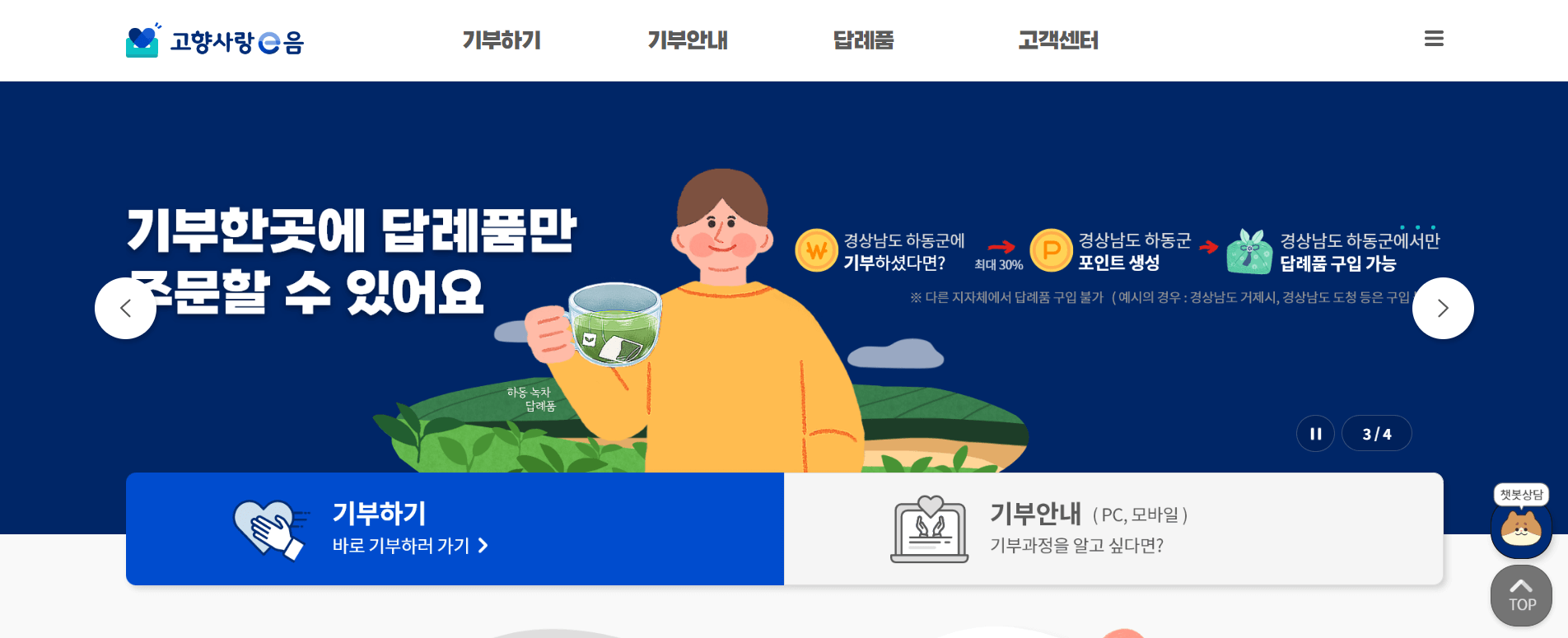 - 기부금으로 지역 농산물 등을 제공받을 수 있습니다.